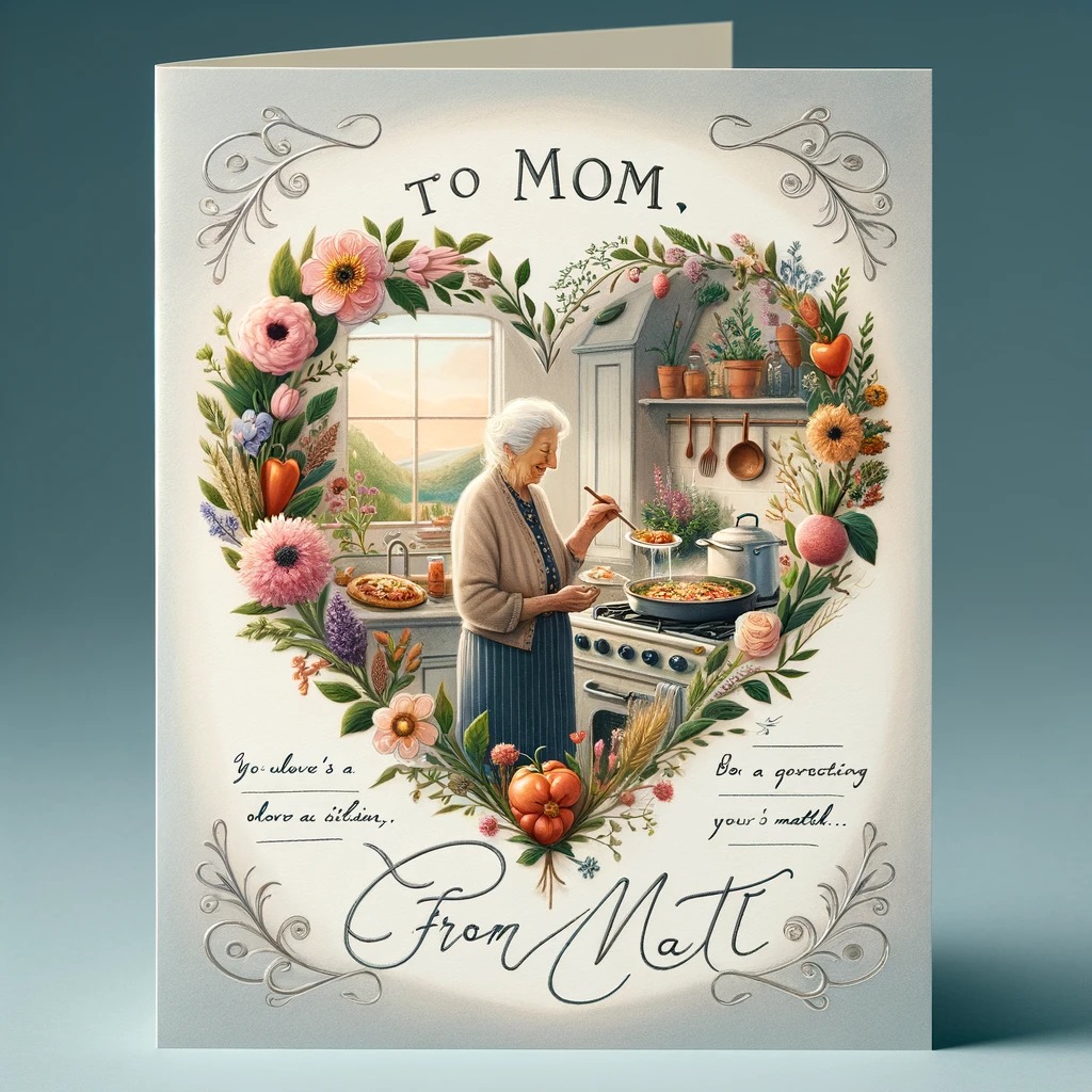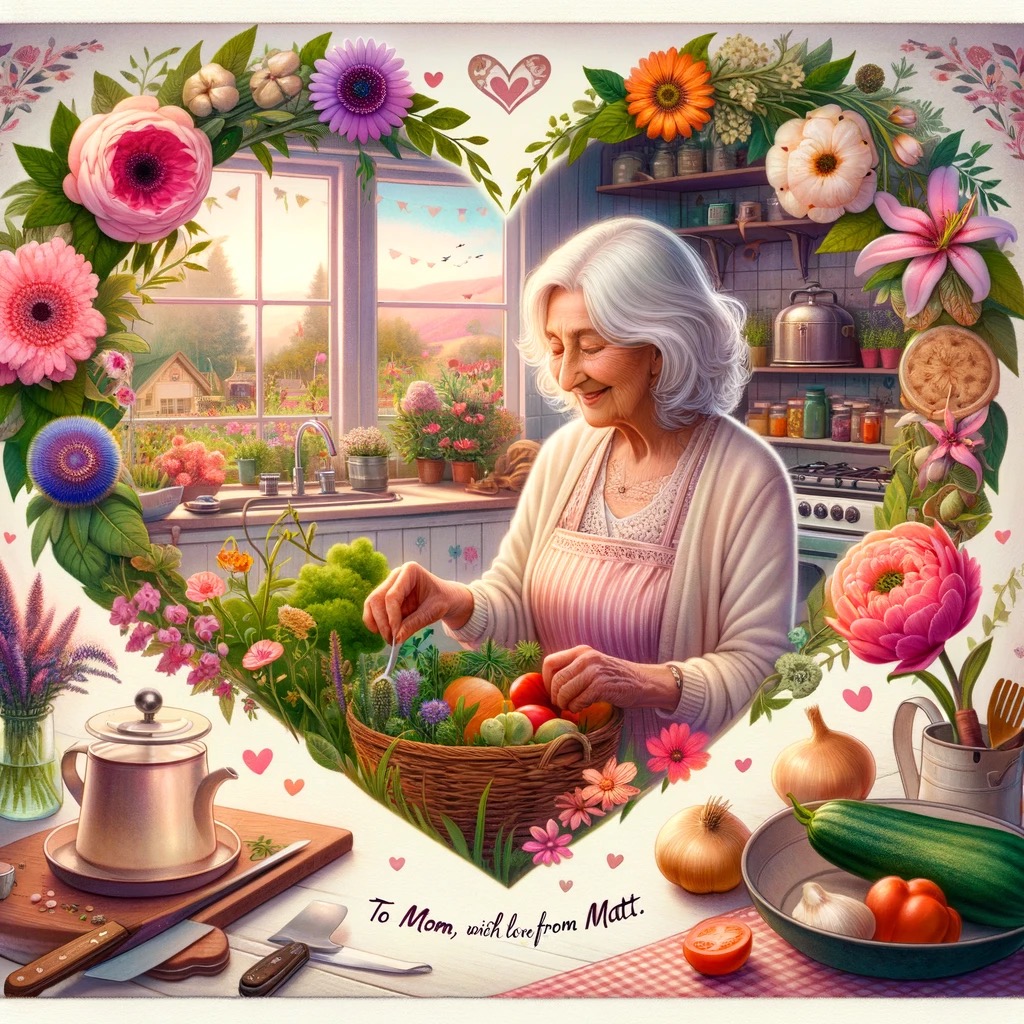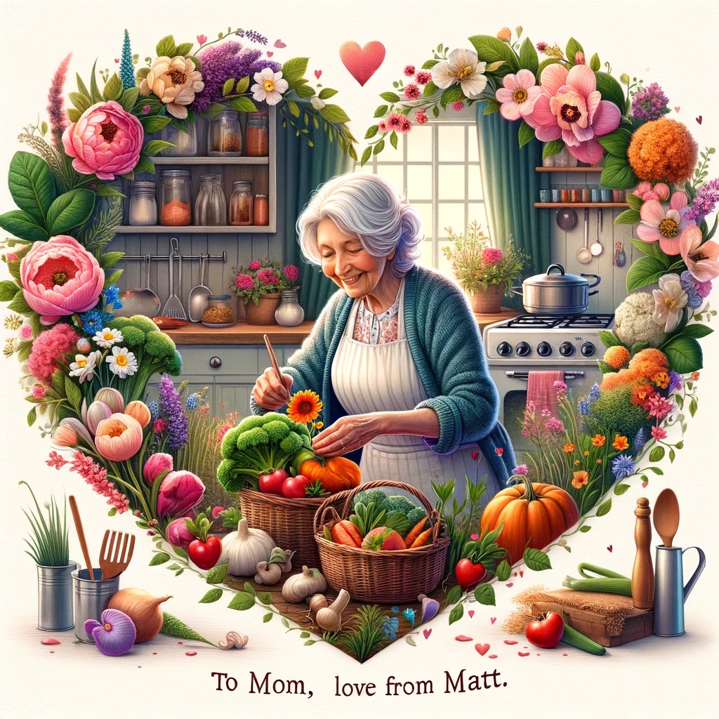 Can you make a valentine for my 84 year old silver haired mother in law, who likes to garden, and cook, To Mom from Matt?