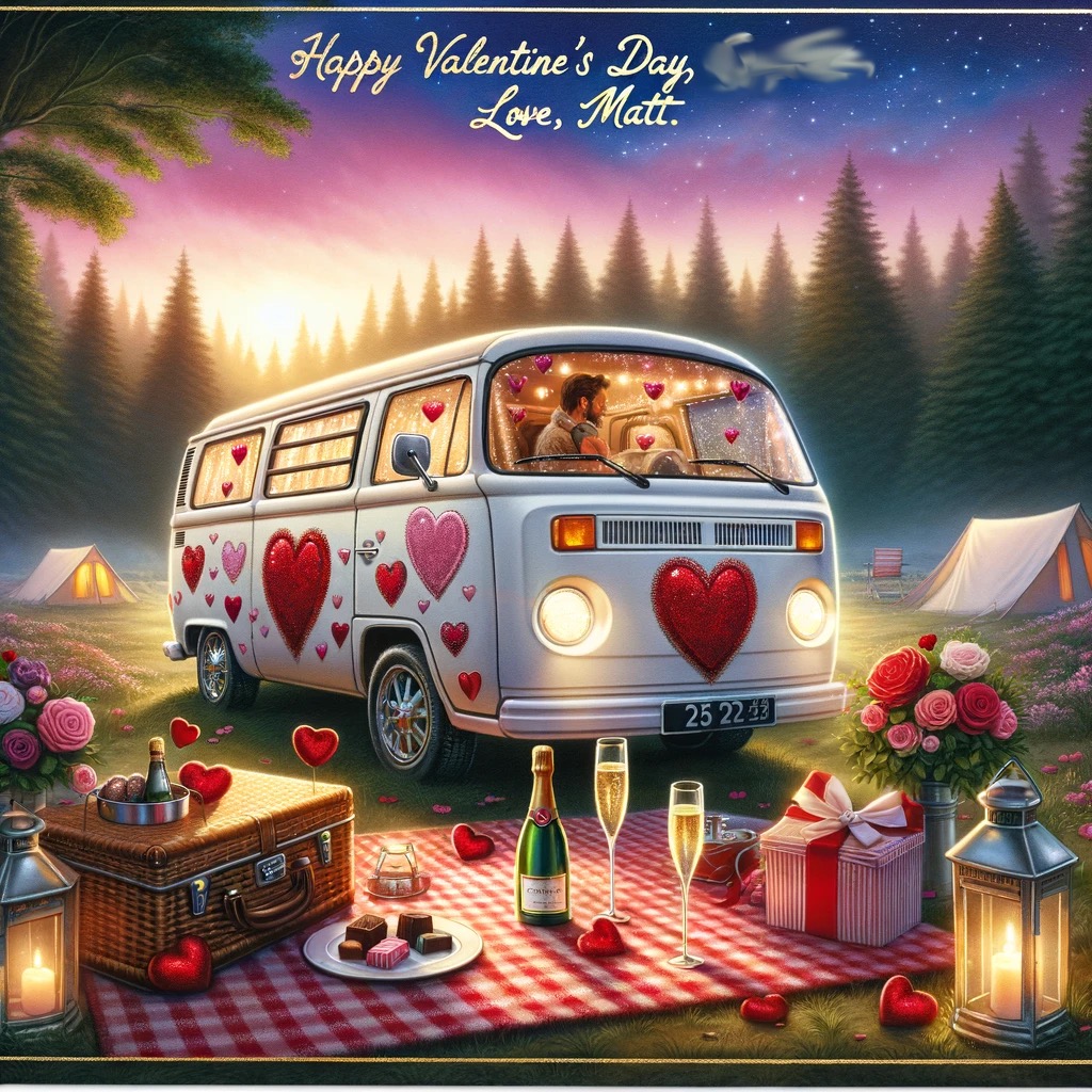Can you make a valentine for me, to my wife from Matt, using the theme of a RV camper?