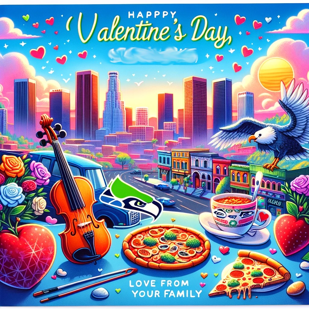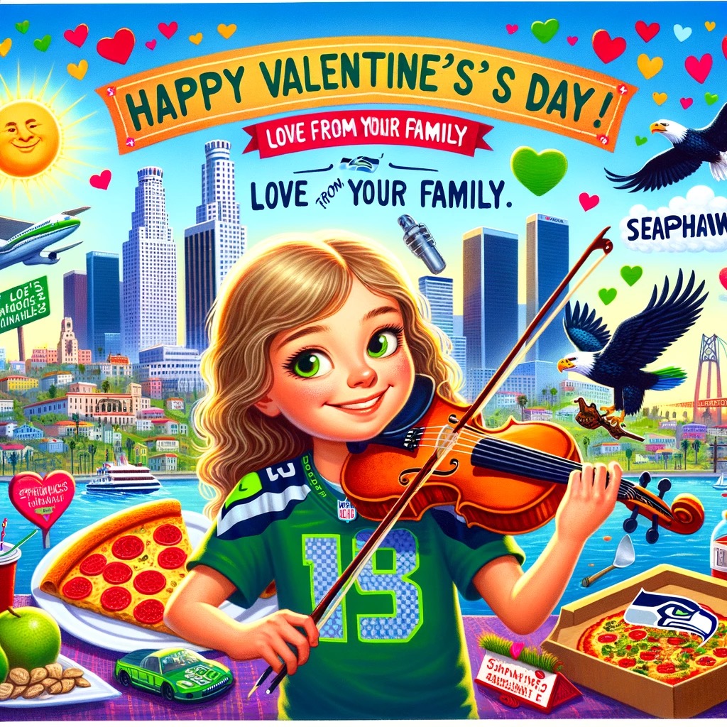 Wow, that one looks great. Can you make a valentine card for my Niece #2? She lives in LA, likes the Seattle Seahawks football team, eats pizza and plays the fiddle.