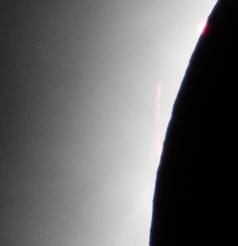 To the naked eye, the moon appears round and smooth, however through a 3000mm telephoto lense you can see that in addition to a Plasma Plume, there is a irregular outline to the moon. This is in fact do the the irregular outline of the moon itself, with all its mountains, craters and smooth plains.
