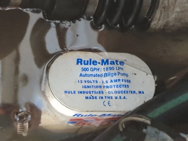 The bilge pump was probably original, although soldered wire under electrical tape does not seem to to be a factory installation. This pump has 3 wires. Pumps with 2 wires only support manual operation.