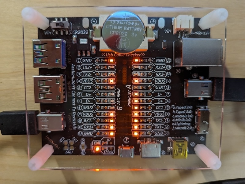USB Cable Tester Board USB Cable Checker Data Wire with Acrylic Case Charging Test Data Line Type-C Micro Type A Type B