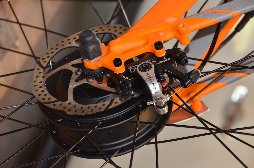 These are nice low-maintenance brakes. The large 160 mm rotors give the brakes the leverage they need to stop quickly with even control.